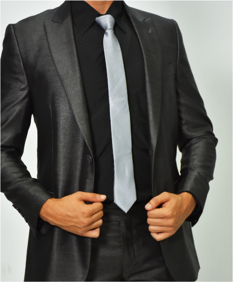 - Saco de 2 botones, solapa de punta. - Corbata a gusto en combinación con la camisa. - Camisa de cuello tradicional.